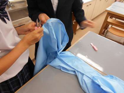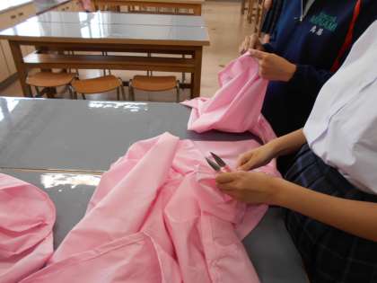 家庭科部では、全クラス分の給食配膳ワゴンを作っています。学年カラ—で素敵なものが完成間近です。