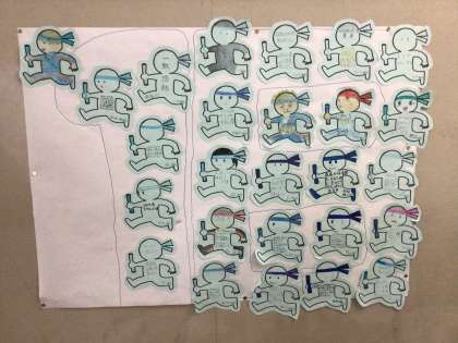 クラスカラーは赤:A組、青:B組、黄:c組です。