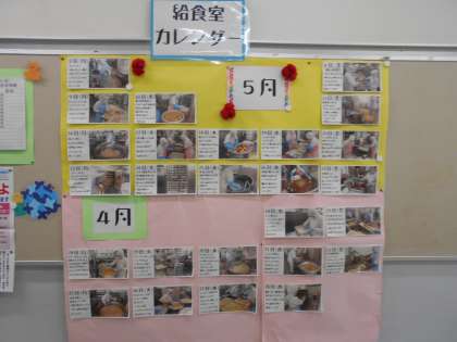 給食室カレンダーを見ると、私たちの食べる給食がどのように作られているのかがよくわかります。
