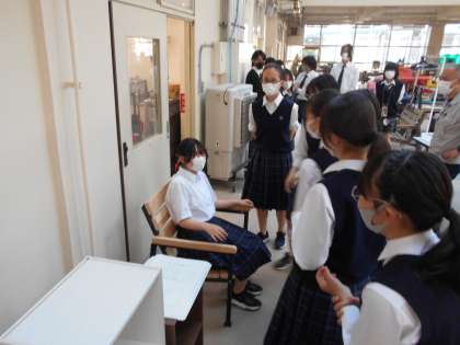 今回は生徒会役員同士の顔合わせや活動内容の報告などを行い、今後の交流について検討しました。また、校内を案内していただき、陶芸、椅子、美術などさまざまな作品を見せていただきました。商品でもおかしくないような素晴らしい作品の数々に、生徒会役員も圧倒されていました。