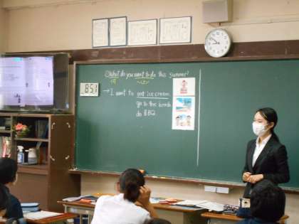 日本語をほとんど使わず、文法も英語で説明し、また絵を使い、分かりやすく授業を展開しました。