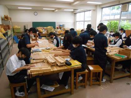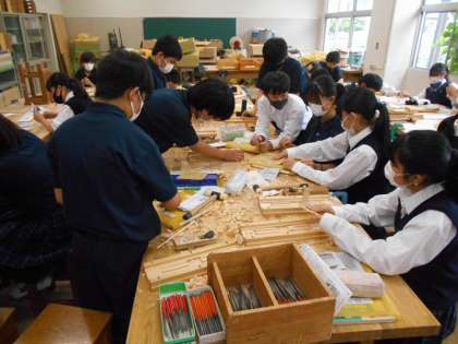 一生懸命削っている生徒や、疲れて休憩している生徒がいました。