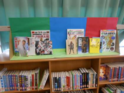 社会科で学んでいる分野に関係する本のコーナーを設けています。学習して、もっと知りたいと思うことがあったら、ぜひ読んでみてください。
