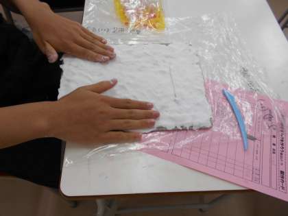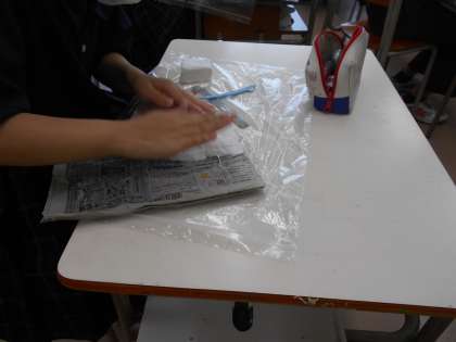 各自持ってきたシャツをもとに紙粘土で作品を作っています。完成が楽しみですね。