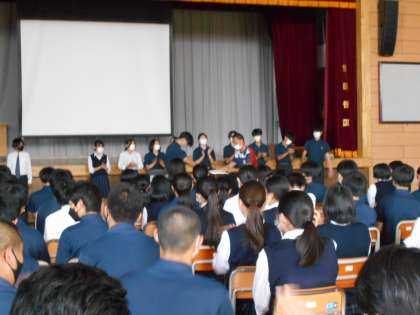 ・各クラスの学級委員からクラスの良い所と改善点の発表
