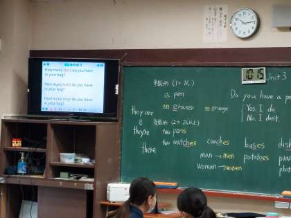 How manyを使い、数を尋ねる単元てでした。実物を使い、リアルなシチュエーションを再現し、学習の定着を図っています。
