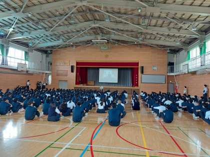 2つ目は、生徒会役員が製作したビデオを上映しました。内容は、夏休みを前にした『川遊び』『火遊び』『ゲームセンターでの遊び』の注意点やルールでした。