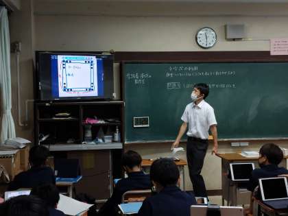ロイロノートの画面共有機能を使用することで、発表者は図を提示したり書き込んだりしながら説明することができ、聞き手は手元のタブレット端末で発表者の考え方を見ることができます。