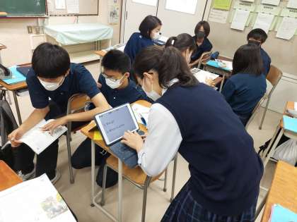 生徒が本文の内容に関してのQ&Aを作り、その質問をみんなで解いていました。