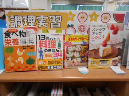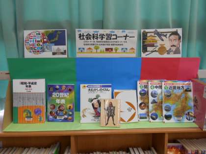 社会科の授業に関連した図書・家庭科の授業に関連した図書・理科(自由研究)の授業に関連した図書コーナーを作りました。