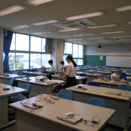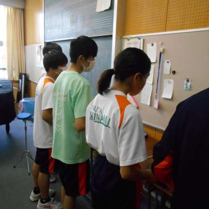 各部屋で楽器ごとに練習をしています。各自の練習や、先輩が中心となって合わせる練習などを行っています。