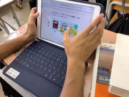 文法の学習で「連体詞」「副詞」の学習をしています。問題集に加えて、学習アプリ「キュビナ」を利用しています。