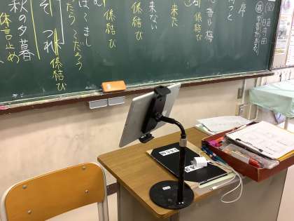 自宅でも授業を受けられるようにZoom配信を行なっています。共有画面で資料を示したり、ロイロノートで資料を送ったりしながら授業を進めています。