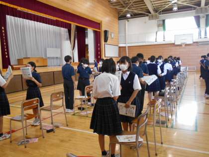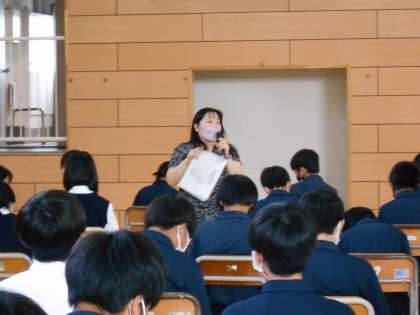 写真は6時間目に2年生で行われた『職場訪問・体験マナー講座』です。