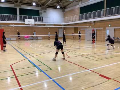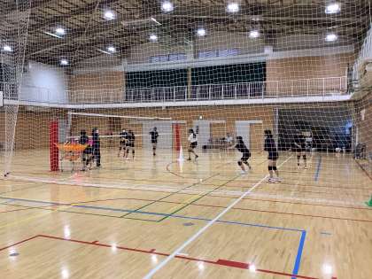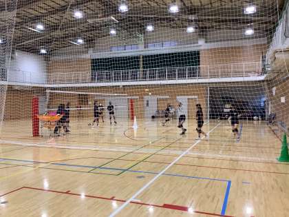 本日はALTの先生も練習に参加しました。サーブ・レシーブ・スパイク練習など、いつもの練習を行いました。舞台側のコートでは、明日の道徳地区公開講座や来週の生徒会選挙のリハーサル・Zoomテストなどを行なっていました。準備のために体育館を何回も出入する先生や生徒のためにネットを開けるという心遣いの姿が見られました。どうもありがとう。