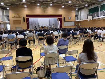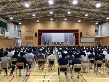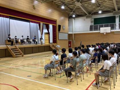 2時間目には、講師に菅野由紀子先生(武蔵野市立第二中学校校長)をお招きし、地域代表の磯さん、大竹さんと各学年代表生徒でシンポジウムを行いました。1時間目に話し合った「働くことの意義」についてクラスで出た意見を発表し、自分にとっての考えを述べました。また、地域代表の方々から将来の夢を見つけるためのアドバイスをいただきました。