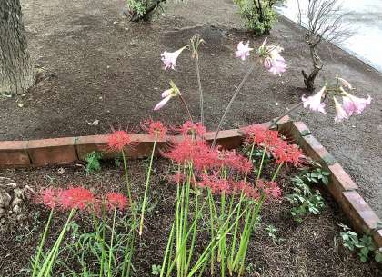 校舎内の彼岸花が盛りです。明日から中間考査です。日頃の成果が出せるよう応援しています。