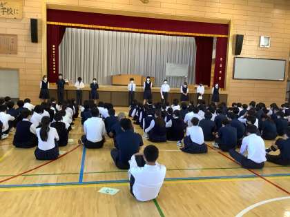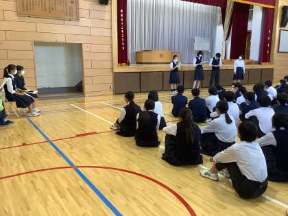 本日の学年集会では、各委員会の委員長が前期のまとめを発表しました。