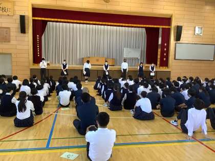 その後、修学旅行に向けて副実行委員長・各係長から決まりや注意事項の話をしました。