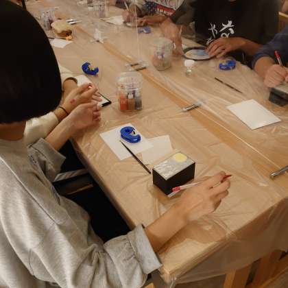 夜の体験学習で加飾を行いました。