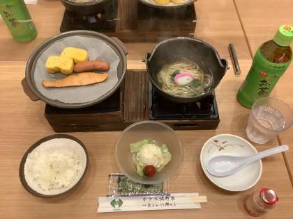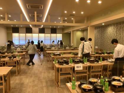 食事係りの人たちは、食事時間10分前に配膳の仕事を行いました。
