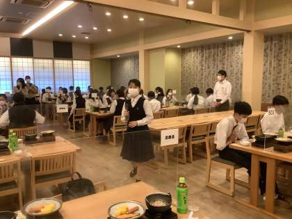 食事の挨拶担当者が、本日の取り組みに関しての話と「黙食」の呼びかけをしました。
