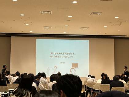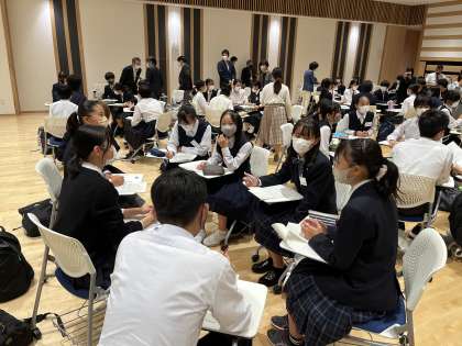 本日は区立中学校の生徒会の代表生徒が集まり、各学校の学校自慢について話し合いました。全員初対面ということもあり最初は緊張している様子でしたが次第に打ちとけ、後半では活発に情報交換が行われていました。