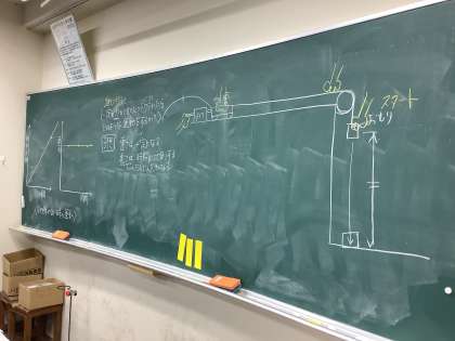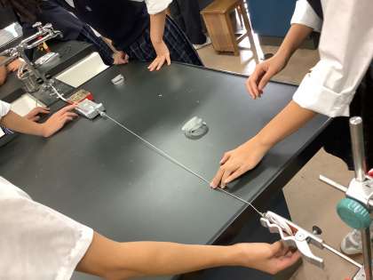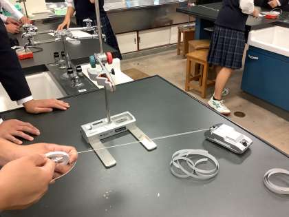 物理で力学の実験を行いました。