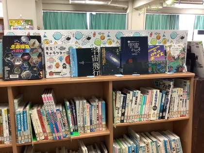 天体・宇宙に関する本のコーナーを作成しました。これから星空が綺麗に見えるので、ぜひ手に取ってみて下さい。