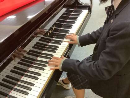 ピアノと指揮に合わせて、本番に向けて練習に励んでいます。