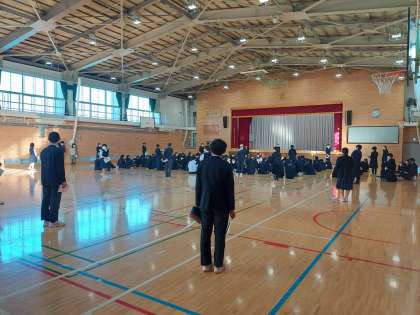 2年生は、11月21日に行く、TGG(Tokyo Global Gateway)について、学年集会を行いました。写真は、当日のグループ行動班で確認作業等をしています。