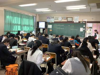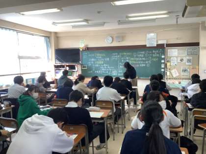 授業の様子1 公開日 2022/11/12 更新日 2022/11/12 今日の南中(なんちゅう) 本日3時間の授業を行いました。期末考査前のため、試験範囲の内容を振り返る授業をしているところもありました。
