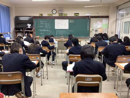 2学期期末考査一日目 公開日 2022/11/14 更新日 2022/11/14 今日の南中(なんちゅう) 今日から期末考査が始まりました。 朝の自習の時間を有効に使って勉強に取り組んでいます。 9科目と科目数が多いですが、頑張りましょう!