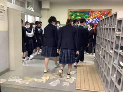 昨日の避難訓練(2年) 公開日 2022/11/18 更新日 2022/11/18 今日の南中(なんちゅう) 2年生は、校舎の3階に教室があるため、 一番逃げにくい場所ですが、 スムーズに逃げることができました。
