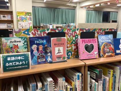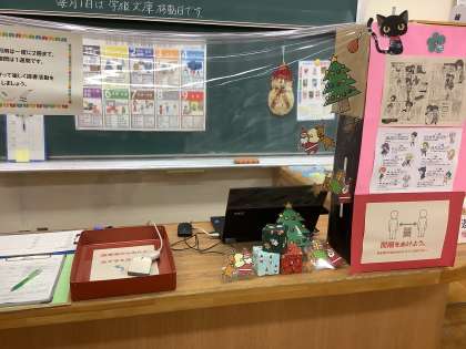 いつもご利用ありがとうございます。12月になりましたので、カウンターや天井の飾りをクリスマスバージョンにしました。また、英語の本コーナー・心がほっこりするコーナーもおすすめです。