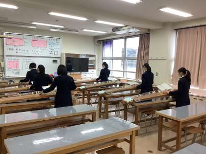 箏曲部は被服室で新曲の練習に取り組んでいます。体育館ではバレー部・バスケットボール部が練習に取り組んでいます。学校図書館では自主学習の利用者がいました。