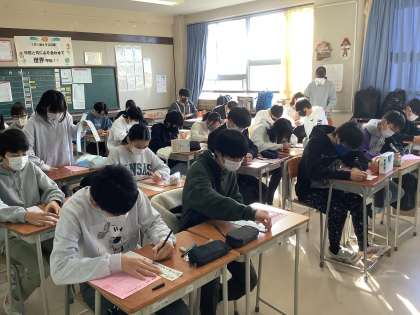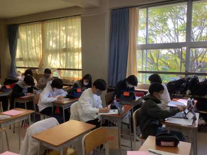 2年生は1時間目に教科「日本語」の教科書を使用し、短歌作成や落語の学習などに取り組みました。