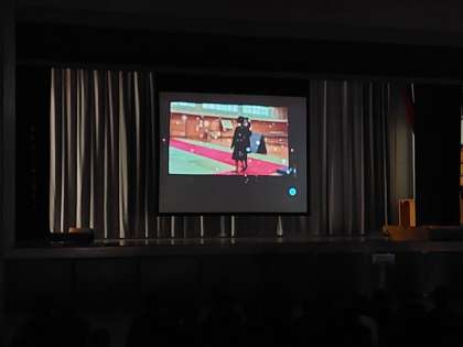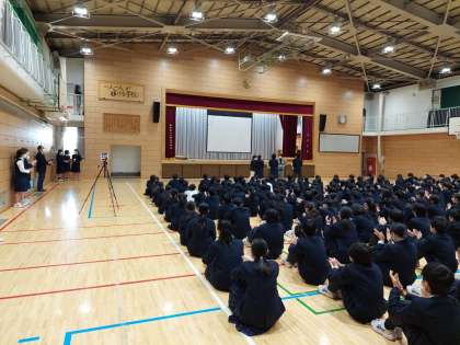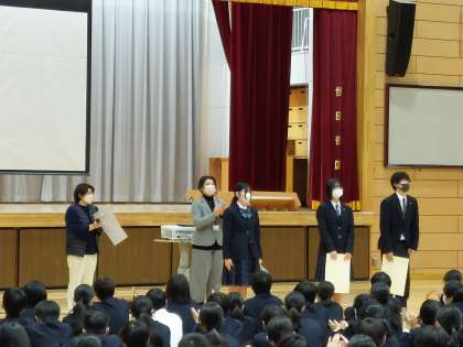 『税の作文』の表彰に引き続き、生徒会役員製作の『冬休みの過ごし方』に関する動画を上映しました。