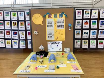 本日と明日、学芸発表会(展示部門)を格技室で行っております。また学校公開中のため、授業参観も可能です。生徒たちの取り組みをご覧ください。