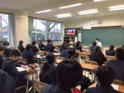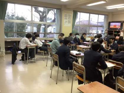 3年生は教室でZoom試聴しました。