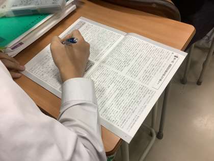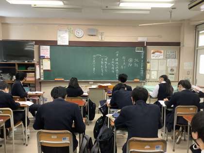 3年生の授業では、読んだ説明的文章の内容を踏まえて、出された課題に対する自分の考えを200文字で書くという「課題作文」に取り組みました。