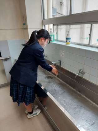 手洗い場に、自動水栓が設置されました。