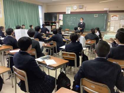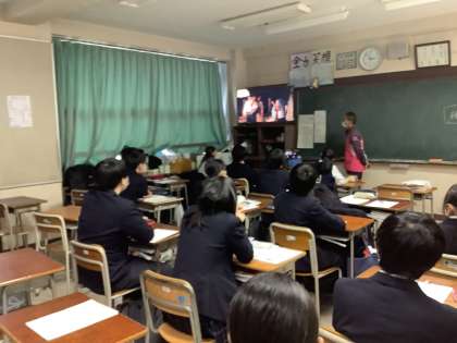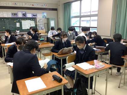 「哲学」「表現」「日本文化」の3分野を学習しています。教科書と動画を利用した授業に取り組んだり、グループで自分の考えを伝え合ったりしました。
