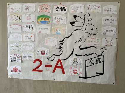 1、2年生、教職員も手作り絵馬を作成し3年生の受験を応援しています!