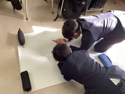 実際に上野や浅草に行ってきて分かったことや調べたことを模造紙にまとめています。