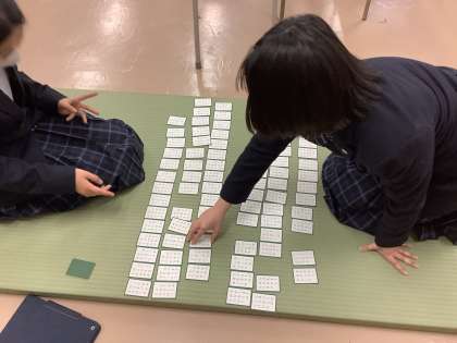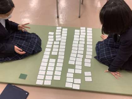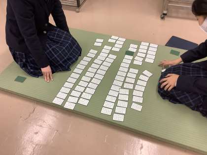 明日の百人一首大会に向けて、練習しています。体育科の先生から、畳も借りて本番のように取り組んでいます。