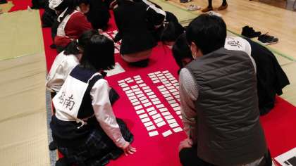 本日、総合教育センターで世田谷区百人一首大会が行われました。各校2名1組の出場で、20校が参加しました。本校は文芸部が参加しました。