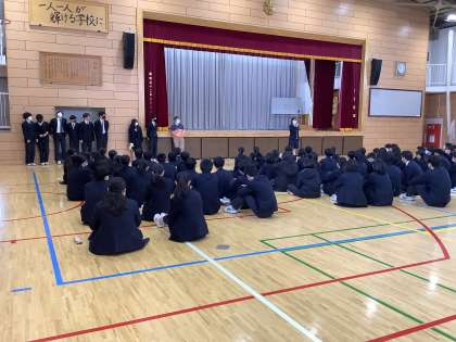 卒業遠足のルールやお小遣い額について担当教員と実行委員から話がありました。その後、当日の行動班決めを行いました。当日晴れると良いですね。