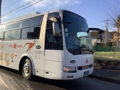 良い天気で、卒業遠足日和ですね。バスはもう来ています。