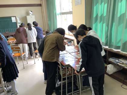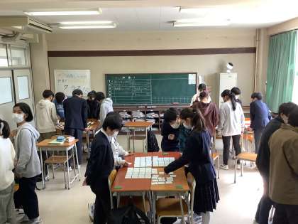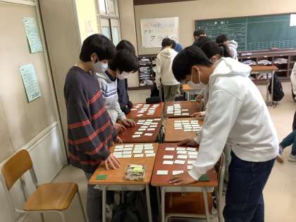 1年生の授業で百人一首をしました。上の句で取れる生徒が多くいて、早いペースでした。1時間で百首詠むことができました。